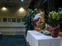 宿の一階で個展が開かれていた。ここにある絵は、すべて口を使って描いたもの。 事故により脊髄損傷の障害を負った作者の作品。(19:52) |
