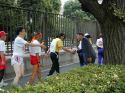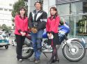 ホンダ本社ビルで、ホンダレディーと記念写真。(13:55) |